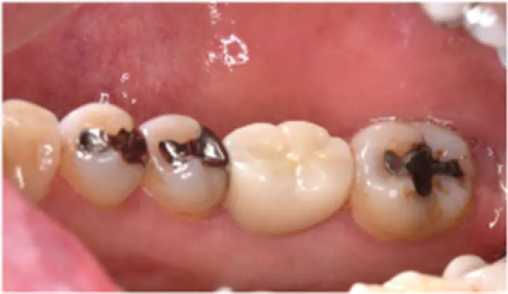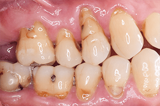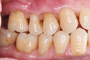 歯周病の治療後、歯周外科手術により 歯肉退縮の改善を行った。 |